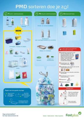 In de PMD-zak mag je volgende zaken werpen: plastic flessen, flacons, tubes, drankkartons, potjes, schaaltjes, bakjes, folies, zakken, spuitbussen, drank- en conservenblikken, aluminium bakjes en schaaltjes, kroonkurken ...