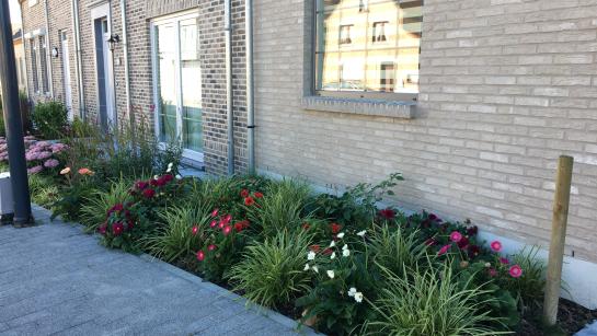 - Is een tegel- of geveltuin mogelijk, dan wordt de aanvraag verder verwerkt en zal de geveltuin aangelegd worden. De stadsdiensten nemen de verharding plaatselijk weg, plaatsen een afboording en vullen het gemaakte plantvak met teelaarde.